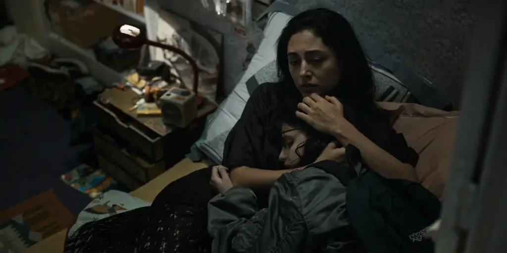 Alpha is made a pariah at school out of fear that she may spread the disease to others. If you’re wondering why she’s let back in school at all before her test results come back… ditto. This also puts a strain on Alpha’s romantic affair with a boy in her class (Louai El Amrousy). On top of that, Alpha’s estranged Uncle Amir moves into her home while trying to recover from drug addiction. Amir is played by Tahar Rahim, who you may know as the villain and his disembodied voice in Madame Web. Lastly, we regularly cut back to years before, when Alpha’s mother worked as a doctor trying to treat patients of the then-new disease.