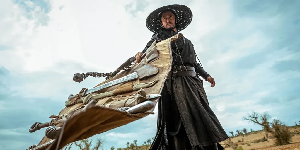 Wu Jing plays desert bandit Dao Ma, who spends his days either capturing villains and taking the bounty or extorting criminals in order to make even more money. He gets into trouble, though, when he ends up fighting against local governor Chang Guiren (Jet Li) alongside another swordsman, and is forced to flee with his really young apprentice Xiao Qi (Charles Ju).
