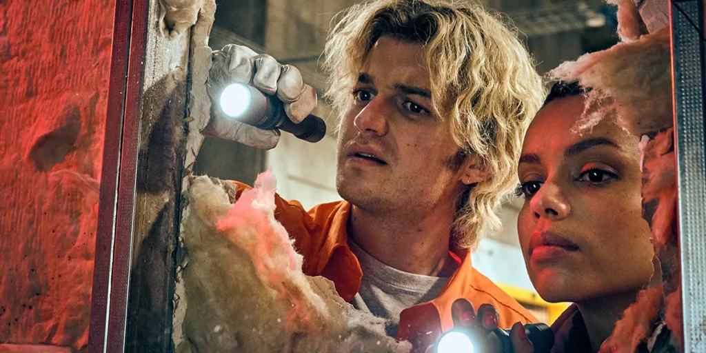Travis (Joe Keery, of Stranger Things) is about to have his first eventful day at his boring job as a floor worker at a secluded storage facility when he begins to hear a repetitive beeping noise behind the wall. Along with new co-worker Naomi (Georgina Campbell, of Barbarian), the pair set out to investigate where exactly the noise is coming from, which leads them to a ladder deep underground. Little do they know that this now seemingly innocent warehouse was once part of a US military operation that kept the most deadly substances known to man locked away.