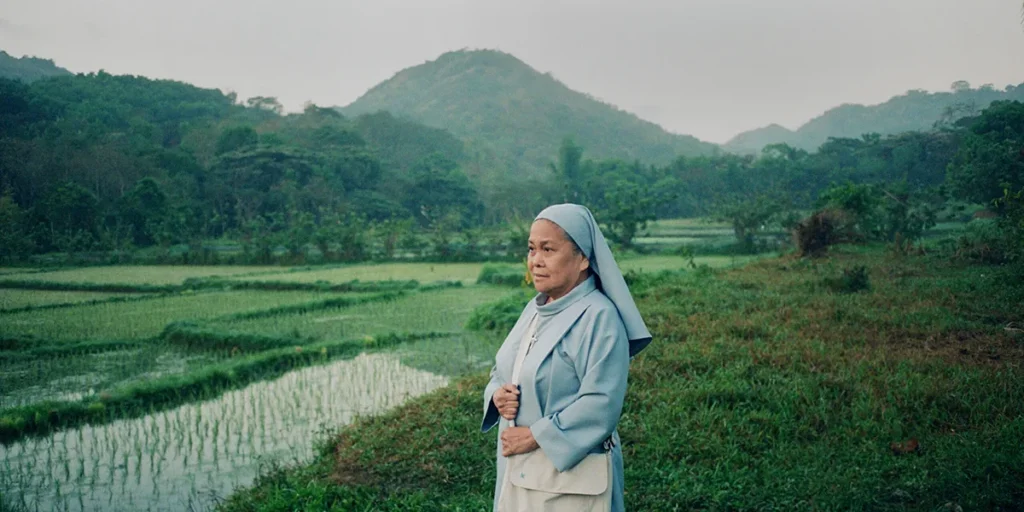 Sister Yolanda (Ruby Ruiz) hardly remembers her life before taking to the convent. Her memories come to her in dreams she is quick to forget, but her novice companion, Sister Arlene (Kare Adea), promises to write them down if Sister Yolanda tells her of them on waking. Her memories, when they come, are of her mother and grandmother, and of her home beside the rice fields and the mountains. They symbolise a cultural ‘before’: before the Catholic Church, before Spanish colonisation, when people were deeply connected to the land. When faced with the corruption of an institution she has represented for most of her life, Sister Yolanda is drawn back to the purity of the ways of her childhood. Ruiz is magnificent and plays the nun with grace, committed to the people around her in a way that’s guided by faith, even at her own expense, while her belief system is faltering.