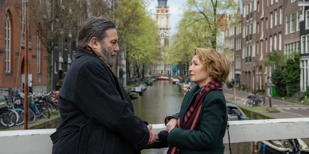 Mindwinter Break, based on the 2017 Bernard MacLaverty novel of the same name, is centered around the long-lasting marriage between Stella (Lesley Manville, of Queer) and Gerry (Ciarán Hinds, of The Narrow Road to the Deep North). The Irish couple has been leading a relatively quiet life in Glasgow after leaving Belfast during The Troubles, where Stella had a violent, near-death experience while pregnant with their only child.