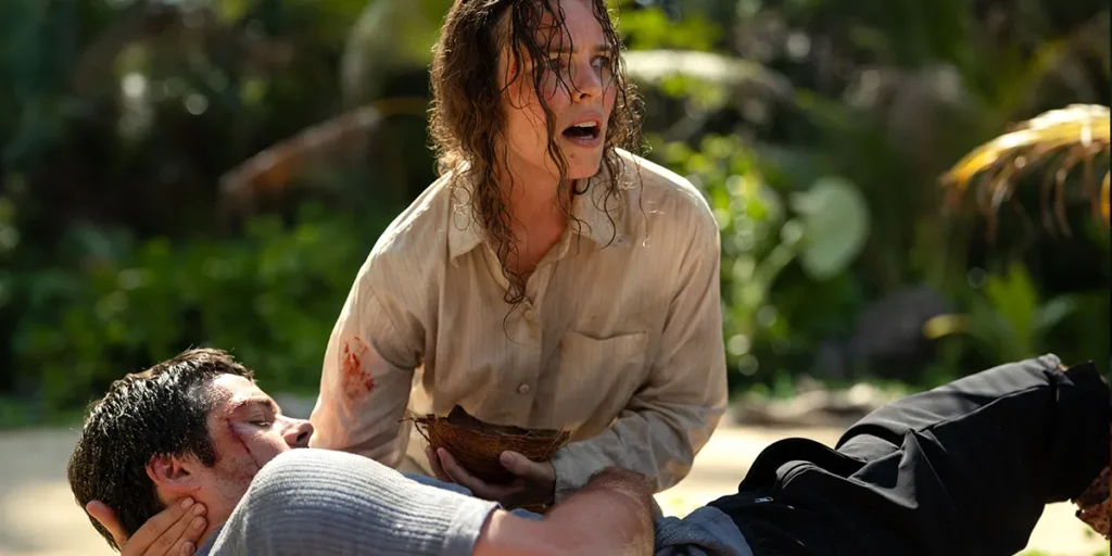 The island ends up functioning like a stripped-down version of the office itself. Linda does the labor that keeps everything running, while Bradley gives orders when he can; the difference is that nature doesn’t care about job titles. The film keeps returning to this idea without underlining it: the hierarchy only survives as long as people agree to pretend it makes sense.