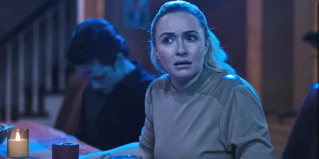 Sarah Pangborn (Hayden Panettiere, Scream VI) is a grieving artist reeling from a car accident that killed her daughter and left her abusive husband in a coma. As her sleepwalking episodes intensify, visions of her husband begin appearing in her home, and the boundaries between nightmare and waking life start to dissolve. It’s a premise with genuine potential, touching on night terrors, PTSD, domestic abuse, and the supernatural. The problem is that Auman approaches each of these elements with the depth of a Wikipedia summary, name-checking ideas that sound authoritative without ever committing to any of them.