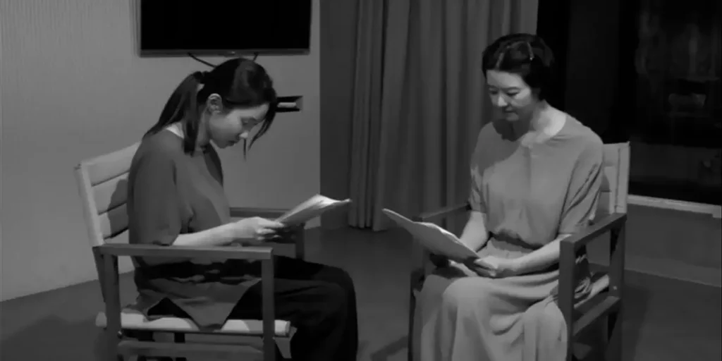 What dilutes the film’s dynamic arrives in its final chapter, in which the actress is asked to reenact the conversations that have just taken place. Paired with another trainee (Park Miso, also a regular in Hong’s recent films), she revisits and reexamines her exchanges with the interviewers.