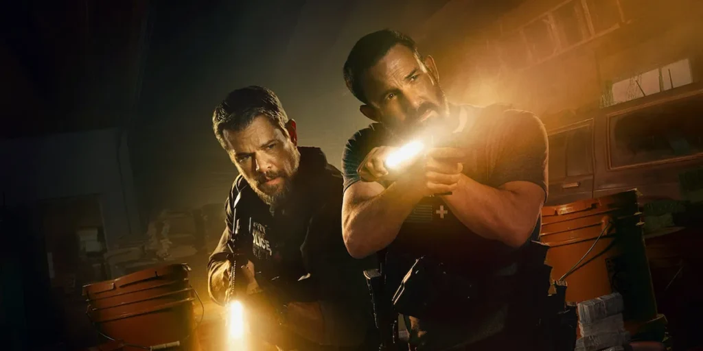 The Rip starts with the murder of police captain Jackie Velez (Lina Esco) by a couple of masked thugs, an event that triggers an atmosphere of unease and paranoia within the precinct. Her boyfriend, Detective Sergeant J.D. Byrne (Affleck), wants to do everything in his power to find her killers, but is cut short by his brother, FBI Agent Del Byrne (Scott Adkins, trying his darnest to sound American), who believes there might be a traitor within the force. And his best friend, Lieutenant Dane Dumars (Damon), has to deal with his superior, Major Thom Vallejo (Nestor Carbonell, of The Dark Knight Rises), who can only manage to complain about budget cuts and PR moves.